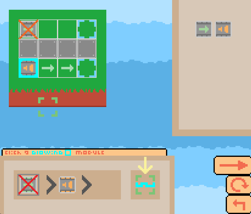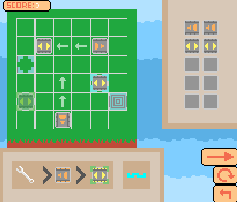 A short puzzle game where modules are placed on a grid, and perform their own tasks to move each other towards the target.